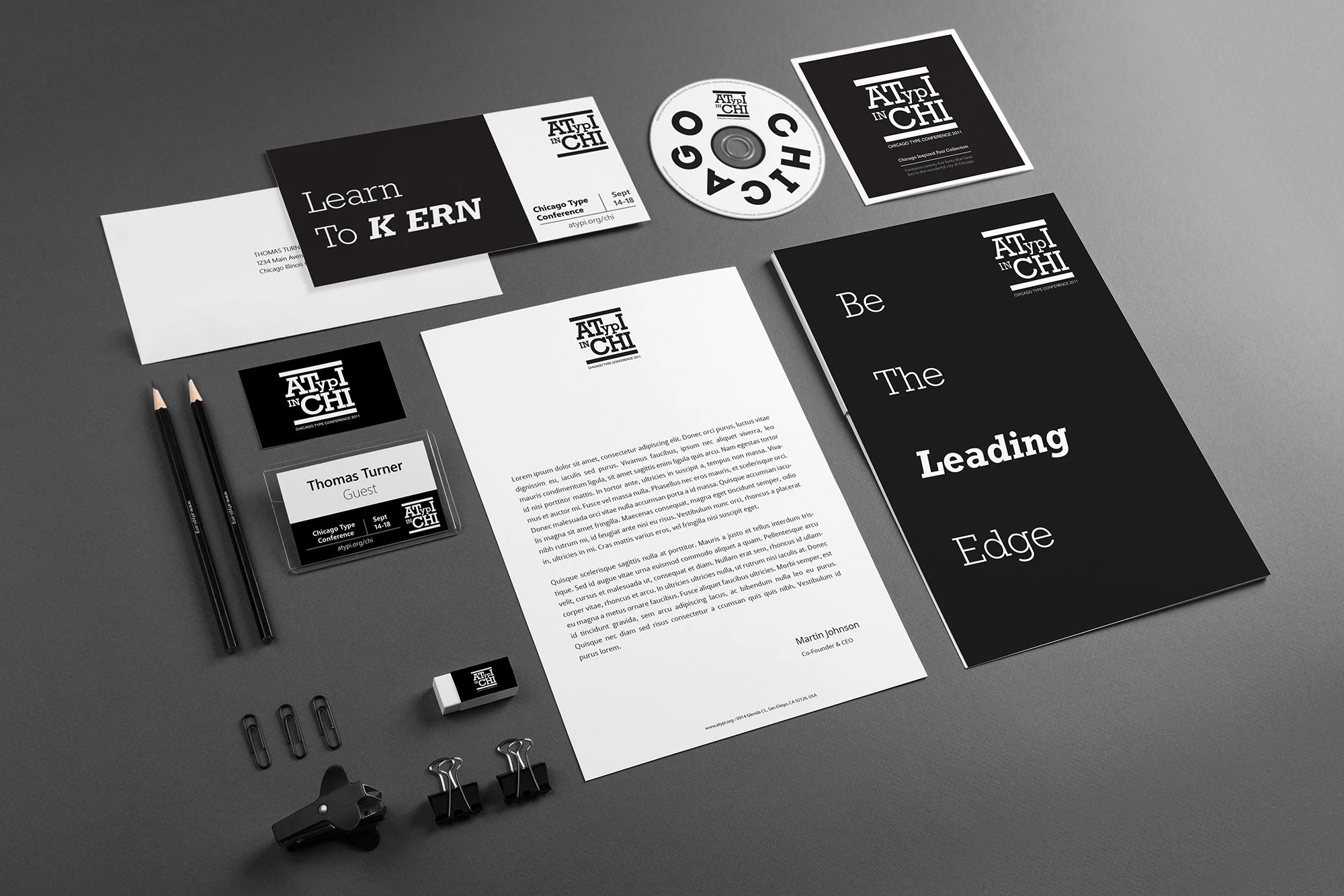 For this project, I developed the complete branding and identity system for a hypothetical ATypI (Association Typographique Internationale) Conference in Chicago, envisioned to take place at the Museum of Contemporary Art. The challenge was to craft a bold, modern, and typographically rich visual language that would both honor the discipline of typography and reflect Chicago’s industrial, architectural spirit.
